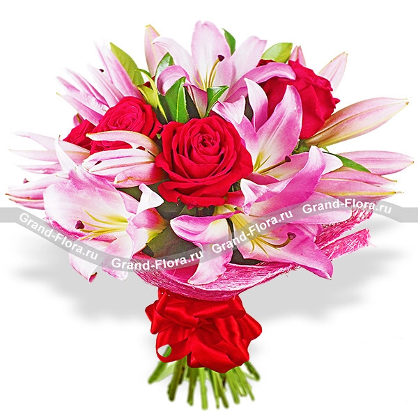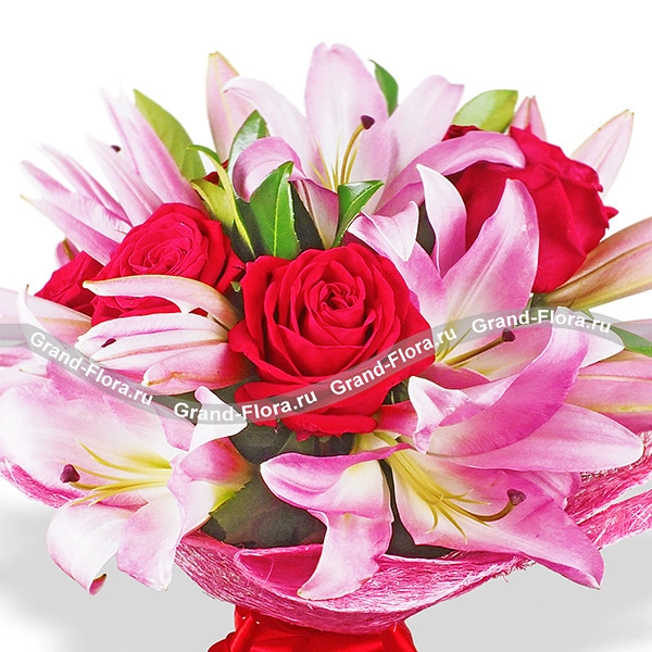 Признаться в глубоких чувствах, поведать о страсти или нежности - мужчинам помогают цветы. Лучшим комплиментом для девушки на ее день рождения будет букет из розовых лилий и отборных красных роз, который порадует ее не меньше 7 дней*.